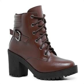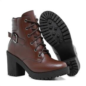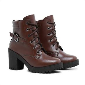 Coturno de Salto Confortável Plataforma Tratorada Marrom com Fivela