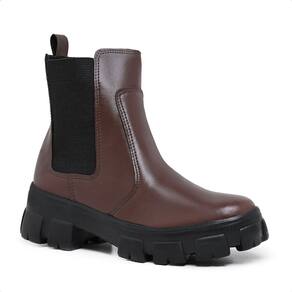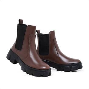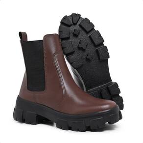 Bota Coturno Tratorada Chelsea Macia Confortável Marrom