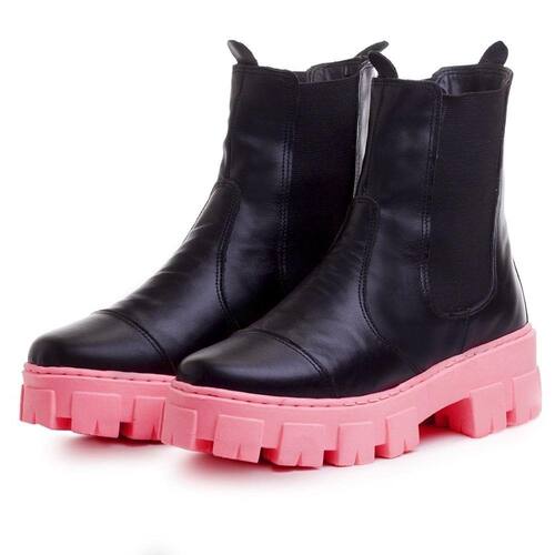Bota Coturno Tratorada Plataforma de Couro Feminina Sola Colorida Moderna - 39 - Preto