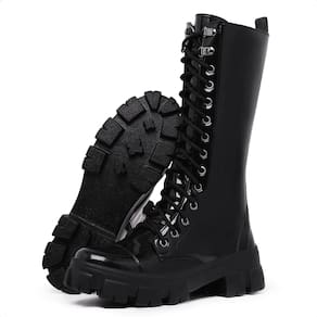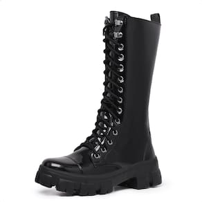 Bota Coturno Tratorado Cano Alto Preto Verniz