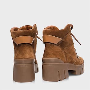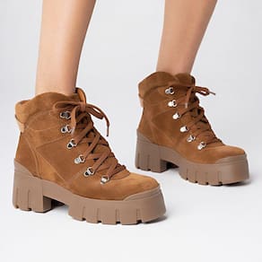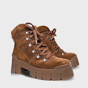 Bota coturno em couro suede com solado tratorado super robusto. Possui cano baixo, fechamento com cadarço e detalhes de ilhós em metal. FEITO EM COURO SUEDE LEGÍTIMO.