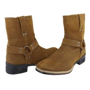 Bota Country Couro Cano Médio Aplicaçoes Argola Lateral Sola Borracha Costurada Palmilha EVA - 37 - Mostarda