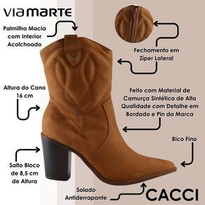 A bota country feminina da Via Marte é a escolha ideal para quem busca um calçado que una presença marcante, conforto absoluto e acabamento de alto padrão. Seu design é inspirado no estilo western, trazendo bordado no cabedal de camurça sintética e com seu pin da marca, detalhes que enriquecem o visual sem exageros. O cano com de 16 cm oferece o equilíbrio perfeito entre modernidade e praticidade, garantindo um caimento elegante tanto com roupas ajustadas quanto com peças mais amplas. Seu acabamento suave e o visual sofisticado combinam com diversas ocasiões e estilos.