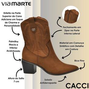 A bota country Via Marte é a escolha ideal para quem busca unir estilo marcante com conforto em todas as ocasiões. O destaque especial fica por conta do enfeite na parte superior do cano que adiciona um toque de charme e personalidade, elevando o visual com autenticidade e presença. A parte interna é revestida com material acolchoado que garante bem-estar ao longo do uso, enquanto a palmilha extremamente confortável proporciona uma sensação suave a cada passo. O fechamento prático com fecho ecler localizado na lateral interna oferece facilidade no calce e um ajuste seguro aos pés. Confeccionada em material sintético de alta qualidade com acabamento semelhante à camurça e detalhes em costura, ela expressa sofisticação em cada detalhe. O solado com tecnologia antiderrapante proporciona segurança e firmeza durante a caminhada, ideal para diferentes tipos de superfície. A altura do salto de 7 cm garante uma elevação elegante sem comprometer o conforto, sendo perfeita para ser usada em momentos casuais, passeios ao ar livre, eventos com atmosfera rústica ou mesmo para adicionar um toque ousado e moderno ao look urbano. Essa bota é a combinação perfeita entre conforto, design refinado e presença marcante, pensada para mulheres que desejam se destacar com estilo e segurança em qualquer ambiente.