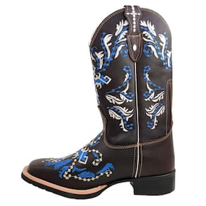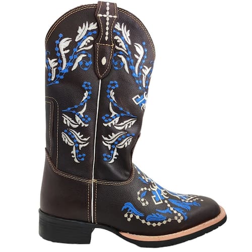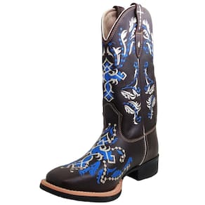 Bota Country Feminina em Couro Bordada Bico Quadrado Cano Longo Rodeio Festa de Peão Western Oliveira 10.001