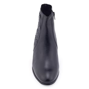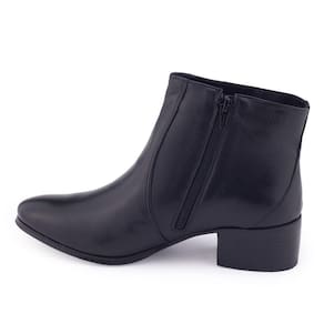 Bota Feminina Dazzani 60034 é um modelo clássico tem cabedal fabricado em couro de cabra liso com detalhe em recortes e costuras com um zíper fake na lateral externa. É um modelo confortável, apresenta um bico afinado redondo e fechamento por zíper na lateral interna. Toda forrada internamente, sua palmilha é fixa, macia e revestida em material têxtil apresentando a logo da marca. O salto bloco é médio, possui aproximadamente 4cm de altura com acabamento fachetado, é confortável e traz segurança ao caminhar. Seu solado possui frisos para maior segurança.