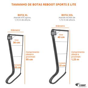 Acompanha a Reboot Lite: Compressor, 1 par de botas XL, Mangueiras conectoras. Palmilhas massageadoras/estabilizadoras, Controle Remoto, Fonte, Manual de instruções/Garantia