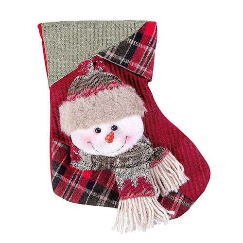 Bota De Natal Decorativa Suspensa Em Poliéster Xadrez 20x25cm Boneco de Neve -