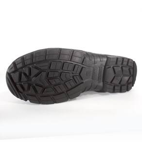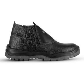 Calçado de segurança tipo Bota, cabedal em couro, constituído de gáspea em couro, traseira em couro e inserto em couro, colarinho forrado e estofado. Com fechamento através de elástico e palmilha de montagem fixada pelo sistema strobel.