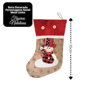 Bota Meia Natalina Boneco de Neve Linho Bege 35cm