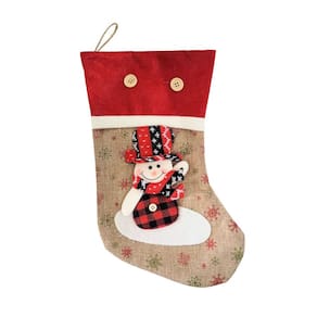 Bota Decorativa Meia Natalina Boneco de neve em Tecido Linho Bege – 35cm