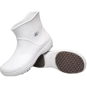 Especificações técnicas - Material: Confeccionada em EVA (Etil Vinil Acetato), um material leve e atóxico. - Fechamento: Design sem biqueira, proporcionando maior liberdade de movimento e conforto. - Solado: Solado de borracha antiderrapante com Tecnologia Super Grip, resistente ao escorregamento em piso cerâmico (com solução de detergente) e em piso de aço (com solução de glicerol). - Isolamento: Oferece isolamento contra o frio e isolamento elétrico, garantindo proteção adicional. - Higienização: Facilmente lavada com água, sabão ou detergente e desinfetada com hipoclorito de sódio. - Certificação: Conformidade com normas de segurança CA 37390.