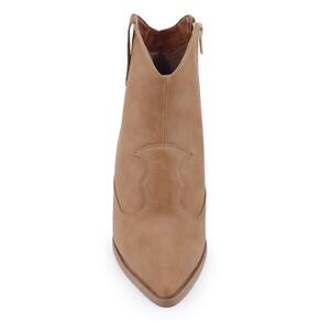 Bota feminina Country de salto médio Delvaz 1262 é um modelo de cano baixo e está super em alta. É uma linda bota Western Texana de bico afinado com o cabedal fabricado em material sintético com acabamento liso com recortes e costuras, é toda forrada internamente proporcionando conforto, seu fechamento é por zíper na lateral interna facilitando o calçe, tem a palmilha fixa, macia e revestida. A bota traz um bom encaixe ao pé, seu salto médio é grosso com acabamento fachetado fabricado em material sintético possui 5,5cm de altura e o solado possui frisos para maior segurança.