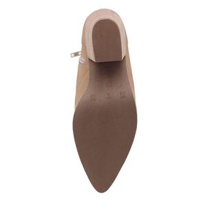 Salto: médio 5,5cm de altura aproximadamente, solado com frisos.