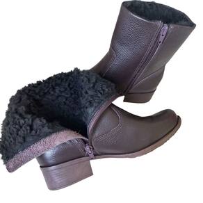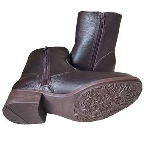 Bota Feminina Café em couro toda forrada com lã preta inclusive na palmilha salto baixo, solado emborrachado, forrada em pele sintética. O salto quadrado é da linha conforto antiderrapante, cano médio. Perfeita para dias frios, toda parte interna é forrada em lã até os dedos e palmilha. Medidas Aproximadas do Produto: Altura do salto: 3 cm; Circunferência do Cano: 24 cm; Altura do Cano: 18 cm (medida do salto até o final do cano) Material: Couro Forro Interno: Forrado com lã sintética macia. Tamanho da Forma: Normal. Recomendamos comprar o mesmo número que costuma usar, a bota se adapta rapidamente ao formato do pé. Fabricação Nacional. Marca: QR Shoes MEDIDAS DA PALMILHA TAMANHO 34 22,5CM 35 23,4CM 36 24,2CM 37 25CM 38 25,6CM 39 26,2CM 40 27CM Marca: Não Informado