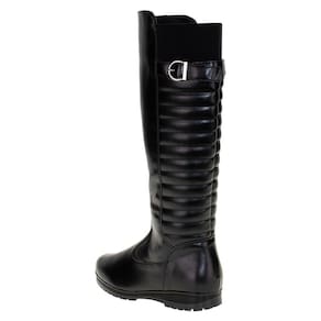 A Bota Feminina Cano Alto Mooncity é confeccionada em material de alta qualidade com acabamento em costura, fechamento por zíper lateral, forro interno em têxtil, palmilha em PU e solado em borracha com salto baixo de dois centímetros e meio. Esse modelo possui cano de trinta e oito centímetros com quarenta e quatro de circunferência.