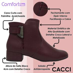 Ideal para quem busca praticidade e elegância no dia a dia, esta bota feminina da Comfortflex une conforto e charme em um design versátil. O cano curto conta com palmilha acolchoada que proporciona uma experiência de uso mais suave e agradável, enquanto o fechamento ecler interno facilita o calce e garante maior praticidade na rotina. Produzida em material sintético de alta qualidade, apresenta detalhe croco lateral com acabamento metalizado que adiciona um toque moderno e sofisticado ao visual.