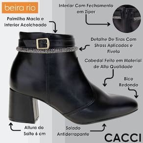 A Bota Feminina Beira Rio é a escolha perfeita para completar o Look em qualquer estação do ano. Confeccionada em Napa Genebra com acabamento em costura, é um modelo extremamente resistente e duradouro. Na lateral contém fechamento prático para facilitar o encaixe dos pés. Internamente recebe forro em têxtil e palmilha em PU, materiais macios que promovem a sensação de bem-estar. O solado é feito em borracha antiderrapante com salto de 6 cm. A Bota de Cano Baixo da Beira Rio contém cano de onze centímetros de altura por 33 cm de circunferência. É um modelo confortável e prático, perfeito para o dia a dia. Garanta a sua!
