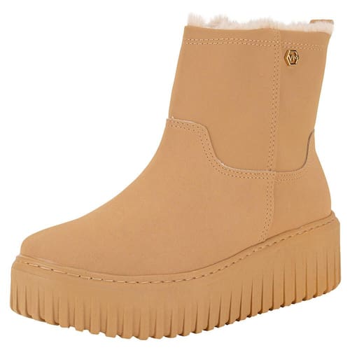 A Bota Feminina Cano Baixo Via Marte é desenvolvida em Nobuck, forrado em poliéster e pelos na parte interna, por fechamento por zíper na lateral. A palmilha em PU é confortável e solado em PVC, com cano baixo de quinze centímetros por trinta e um de circunferência.