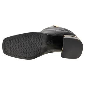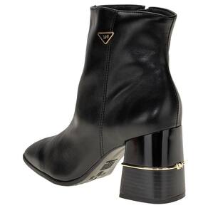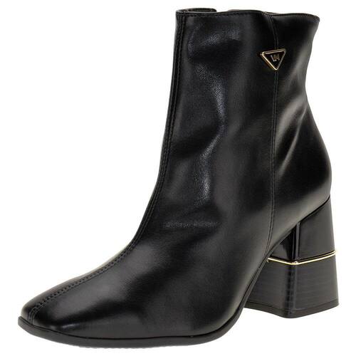 A Bota Feminina Cano Baixo Via Marte é confeccionada em Napa Montana de alta qualidade com acabamento em costura e contém zíper lateral, forro interno em têxtil, palmilha em PU e solado em borracha com salto grosso de nove centímetros. Esse modelo possui um cano com treze centímetros de altura por trinta e um centímetros de circunferência.