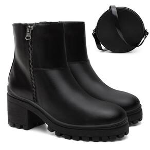 Modelo fashionista, esta bota da Valentina Kister + Bolsa Roma foi confeccionada para garantir durabilidade e proteção. O modelo confeccionado em materia tecnológico e com material interno em tecido, permite maior conforto para produções do dia a dia. Com salto baixo, cano curto e fecho em zíper, inspira ousadia e atitude. Aposte na peça com calça jeans e camisa. Este modelo é pra quem busca conforto e estilo ao mesmo tempo! Bolsa Feminina confeccionada em material tecnológico.