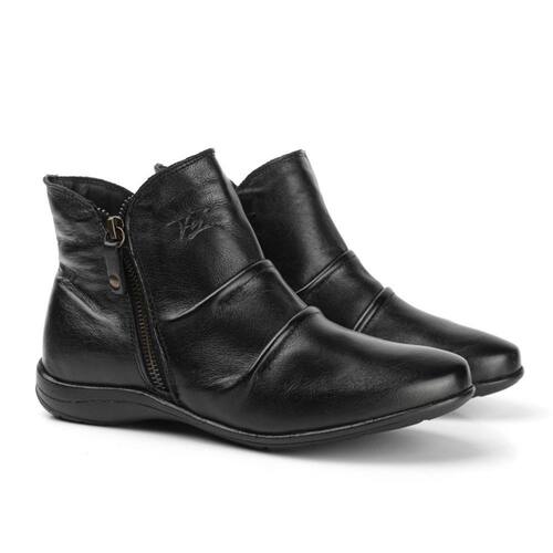 A Bota cano curto da Polo City é aquele modelo que todas devem ter para garantir estilo e conforto no dia a dia. Confeccionada em couro, garantindo a qualidade e durabilidade da bota e solado em borracha, dando segurança ao caminhar. Seu modelo tem fechamento em zíper lateral e possui detalhes franzidos. Ótima para arrasar em qualquer ocasião!