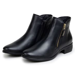Bota Feminina Cano Curto Couro Zíper Lateral Reforçado Bota Coturno Casual Dia a Dia - 34 - Preto