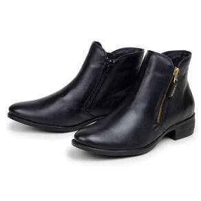 Bota Feminina Cano Curto Couro Zíper Lateral Reforçado Bota Coturno Casual Dia a Dia - 36 - Preto