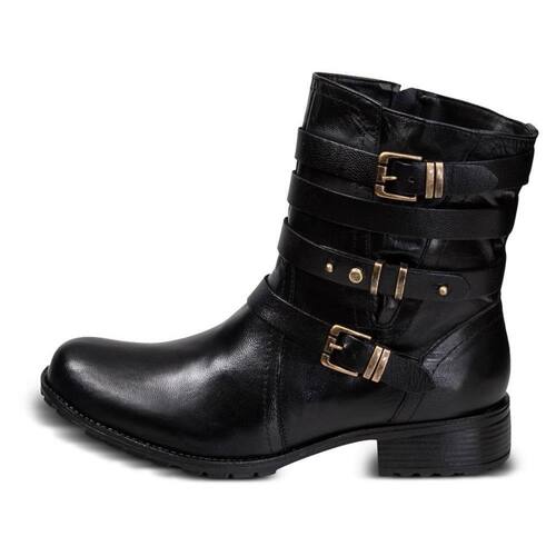 Bota Feminina Cano Curto Salto Baixo Couro Confortável - 35 - Preto