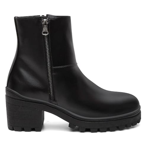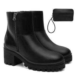 Bota Feminina Cano Curto Zíper Casual + Bolsa Carteira Kit 2 - 35 - Preto