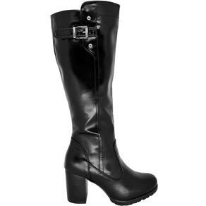 Bota Feminina Cano Longo Maleável com Fivela Zíper Lateral Salto Alto Mooncity 73136 - 34 - Preto