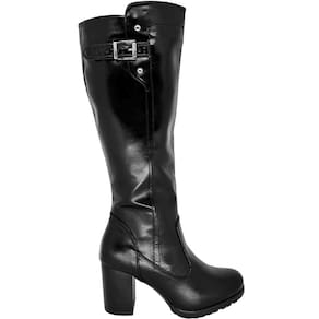 Nome: Bota Feminina Cano Longo Maleável com Fivela Zíper Lateral Salto Alto Mooncity 73136