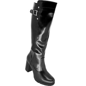 Bota Feminina Cano Longo Maleável com Fivela Zíper Lateral Salto Alto Mooncity 73136