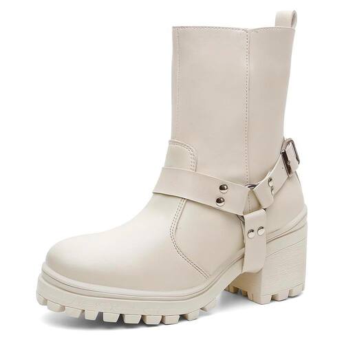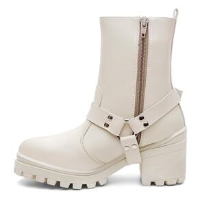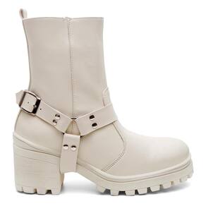Bota Feminina Cano Médio Cabresto Tratorada Bico Redondo - 34 - Bege