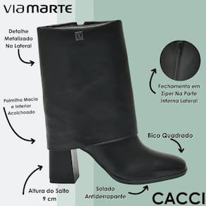 A bota social Via Marte é uma peça de impacto que eleva qualquer produção com sua proposta autêntica e sofisticada. O bico quadrado, aliado ao salto alto grosso, imprime personalidade ao visual e garante uma base firme para o dia a dia — uma combinação perfeita entre elegância e conforto. O cano médio reforça o apelo moderno da peça, ideal para mulheres que buscam versatilidade com estilo.