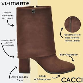 A bota social Via Marte é uma peça de impacto que eleva qualquer produção com sua proposta autêntica e sofisticada. O bico quadrado, aliado ao salto alto grosso, imprime personalidade ao visual e garante uma base firme para o dia a dia — uma combinação perfeita entre elegância e conforto. O cano médio reforça o apelo moderno da peça, ideal para mulheres que buscam versatilidade com estilo.