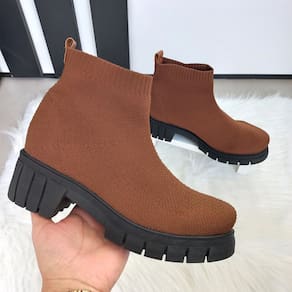 Bota Meia Feminina Caramelo Malha Tricot Knit sola tratorada cano baixo, salto médio, este modelo tem cabedal feito em tricot, sola com micro laqueada pré-fabricada, modelo confortável e excelente para o dia-a-dia. Sola super leve e confortável. A bota é extremamente confortável e se adapta facilmente ao formato dos pés, proporcionando uma sensação de bem-estar durante todo o dia. Forma normal pegar o tamanho que usa normalmente em calçados fechados. Altura Salto: 5cm Altura Cano: 12 cm Fabricação Nacional. Marca: QR Shoes MEDIDAS DA PALMILHA TAMANHO 35 23CM 36 24CM 37 24,8CM 38 25,5CM 39 26,8CM Marca: QR Shoes Marca: QR Shoes Marca: QR Shoes