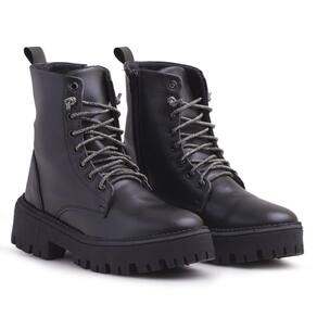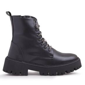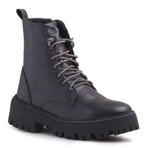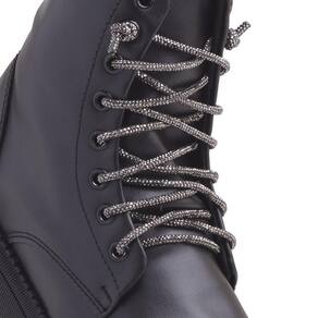 Bota Feminina Coturno Cadarço Strass Zíper Cano Médio - 35 - Preto