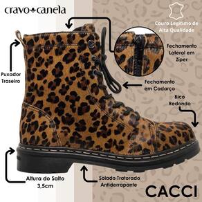 Coturno de couro sem forro. O modelo tem cano médio, bico redondo e salto baixo emborrachado, tratorado. Traz cabedal ajustado ao pé, fecho em cadarços na cor do modelo e tira com puxador na parte traseira e zíper, facilitando o calce. Esse coturno é um coringa combina com tudo e atravessa estações com muito conforto e estilo.