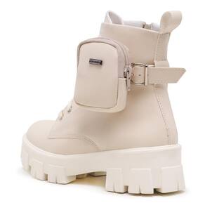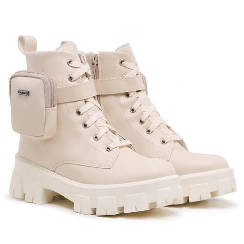 Bota Feminina Coturno Tratorada Cano Médio Cadarço Casual - 33 - Branco