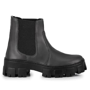 Bota Feminina Coturno 601 Tratorado Cano Medio Elastico - Preto
