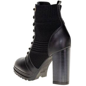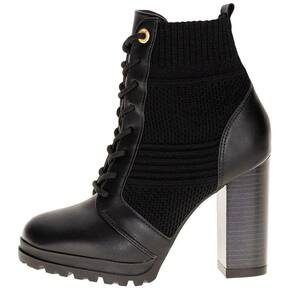 A Bota Feminina Coturno Vizzano é confeccionada em Tecido Knit e Napa com fechamento por cadarço, acabamento em costura, forro interno em têxtil, palmilha em PU e solado em borracha com salto grosso de onze centímetros. Esse modelo possui cano de treze centímetros de altura por trinta centímetros de circunferência.
