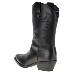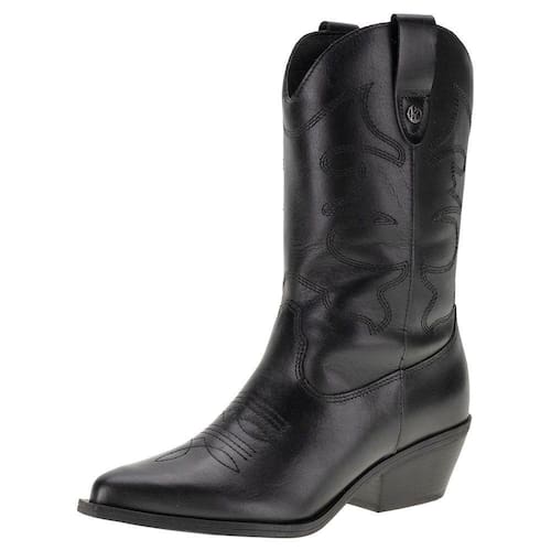 A Bota Feminina Western Cano Médio Bottero é feita em Couro Atanado com acabamento em costura, forro interno em têxtil, palmilha em espuma e solado em borracha com salto grosso de cinco centímetros. O cano mede vinte e dois centímetros por trinta e três centímetros de circunferência.