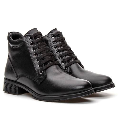 Elegância, conforto e resistência pensados para acompanhar você em todos os momentos. Esta bota feminina em couro nobre é confeccionada com materiais de excelência, cuidadosamente selecionados para oferecer maciez superior, flexibilidade e alta durabilidade, garantindo um calçar confortável desde o primeiro uso. Seu forro interno inteligente combina napa de couro com tecido cacharrel dublado em espuma de 3 mm (densidade 50), proporcionando toque macio, melhor ajuste aos pés e absorção eficiente do suor, mantendo os pés secos e confortáveis por mais tempo. A palmilha em gel forrada em couro reforça o conforto, oferecendo excelente amortecimento e bem-estar ao longo do dia. O solado em borracha de alta qualidade entrega segurança, leveza e resistência, além de ser ecologicamente correto. Com cano médio, salto baixo de 3,5 cm e fechamento por amarração, o modelo une praticidade, estabilidade e um visual elegante, perfeito para compor produções casuais ou mais sofisticadas. Uma bota versátil e confortável, ideal para mulheres que valorizam qualidade, estilo e conforto em cada passo.