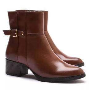 Bota Feminina Couro Cano Curto Fivela Confortável - 38 - Marrom