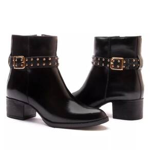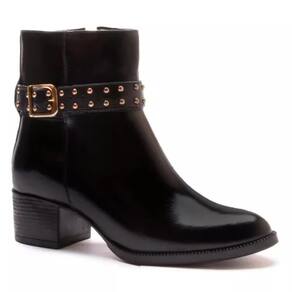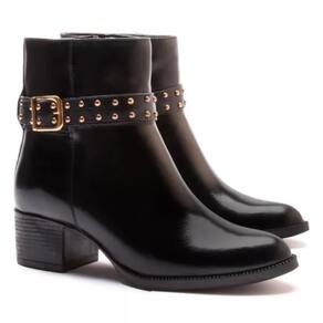 Bota Feminina Couro Cano Curto Salto Baixo Conforto - 34 - Preto
