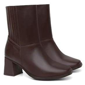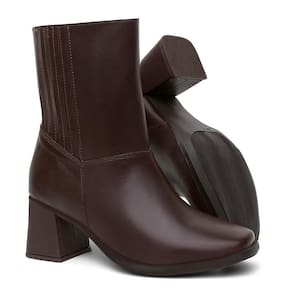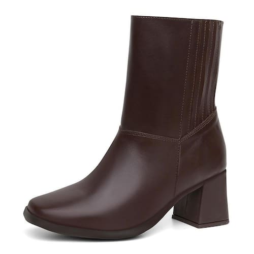 Bota Feminina Couro Cano Médio Zíper Lateral Salto Grosso - 38 - Marrom Cacau