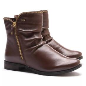 Bota Feminina Couro Casual Cano Curto Zíper Vegetale - 40 - Marrom