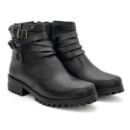 Bota Feminina Couro Confortável Solado Tratorado Zíper - 39 - Preto