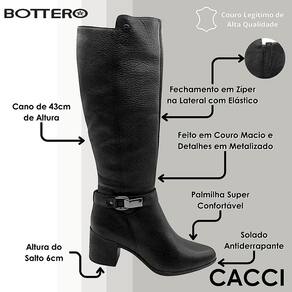 Para completar, o solado antiderrapante garante segurança e firmeza em diferentes tipos de piso, tornando a bota uma escolha funcional para diversas ocasiões. Com visual versátil e acabamento impecável, esse modelo é perfeito para mulheres que buscam aliar conforto, elegância e resistência em um só produto.
